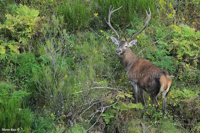 Como dije anteriormente también los ciervos (Cervus elaphus) utilizan los matorrales frecuentemente para descansar, alimentarse y también durante la berrea. El descaro de estos animales durante la época de celo contrasta notablemente con su timidez durante el resto del año. La berrea supone un desgaste muy importante para estos animales y lleva mucho tiempo el recuperarse. A principios de la primavera pierden sus cuernas y se ven indefensos, saliendo a alimentarse al amparo del atardecer y utilizando la noche como refugio.