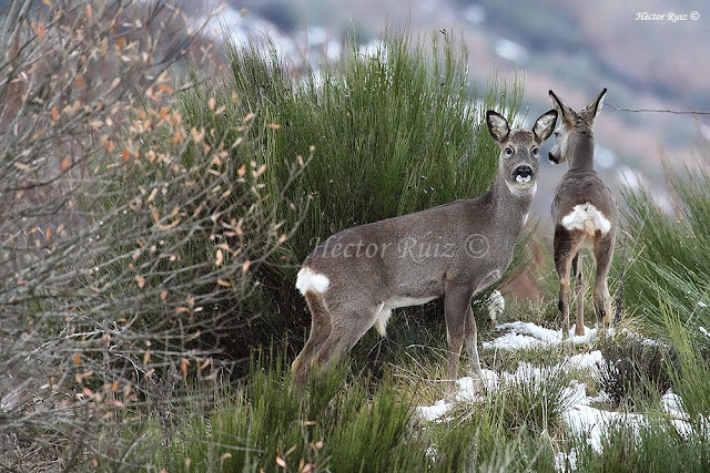 Los corzos han sabido adaptarse a gran cantidad de ambientes (a pesar de recibir el pseudónimo de "duendes del bosque"). Podemos ver corzos en lo más profundo de un hayedo, pero también en la mitad de un trigal castellano o en un piornal subalpino. El pelaje de los corzos luce grisáceo y espeso en invierno mientras que se torna rojizo y fino en verano. Nunca dejará de sorprenderme como la fauna es capaz de soportar las inclemencias más severas de la naturaleza, desde intensas nevadas en invierno hasta calurosos días en verano y la Cordillera es un lugar donde podemos observar perfectamente este tipo de contrastes.